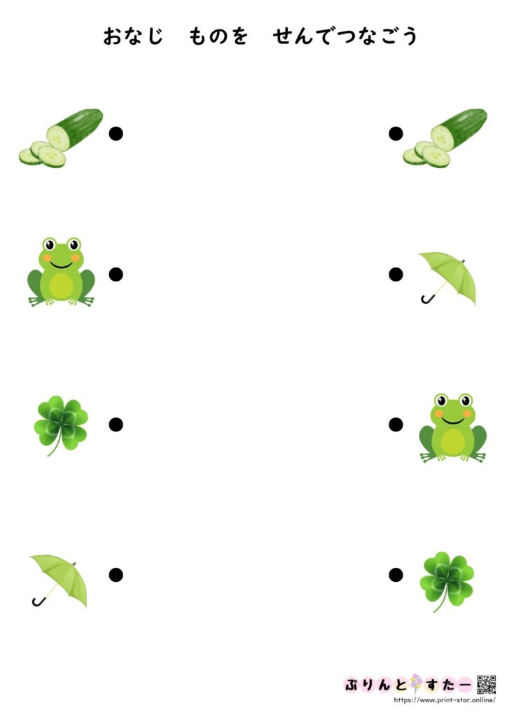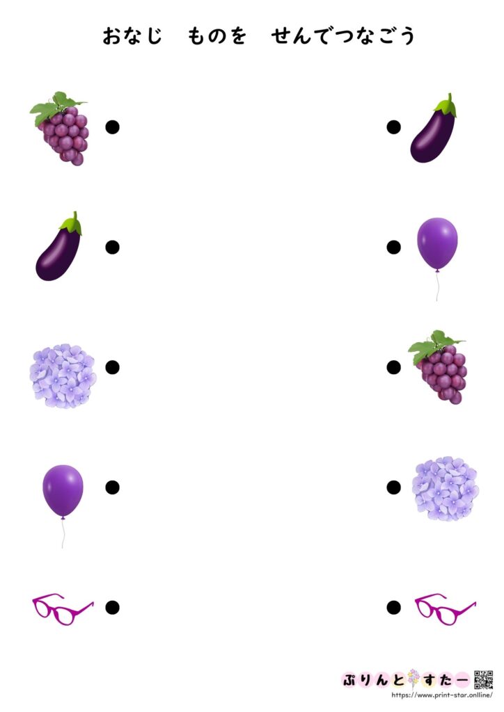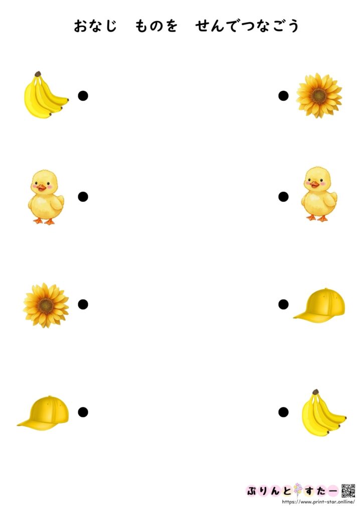 このプリントは、同じイラストを線でつなぐシンプルなワークシートです。
